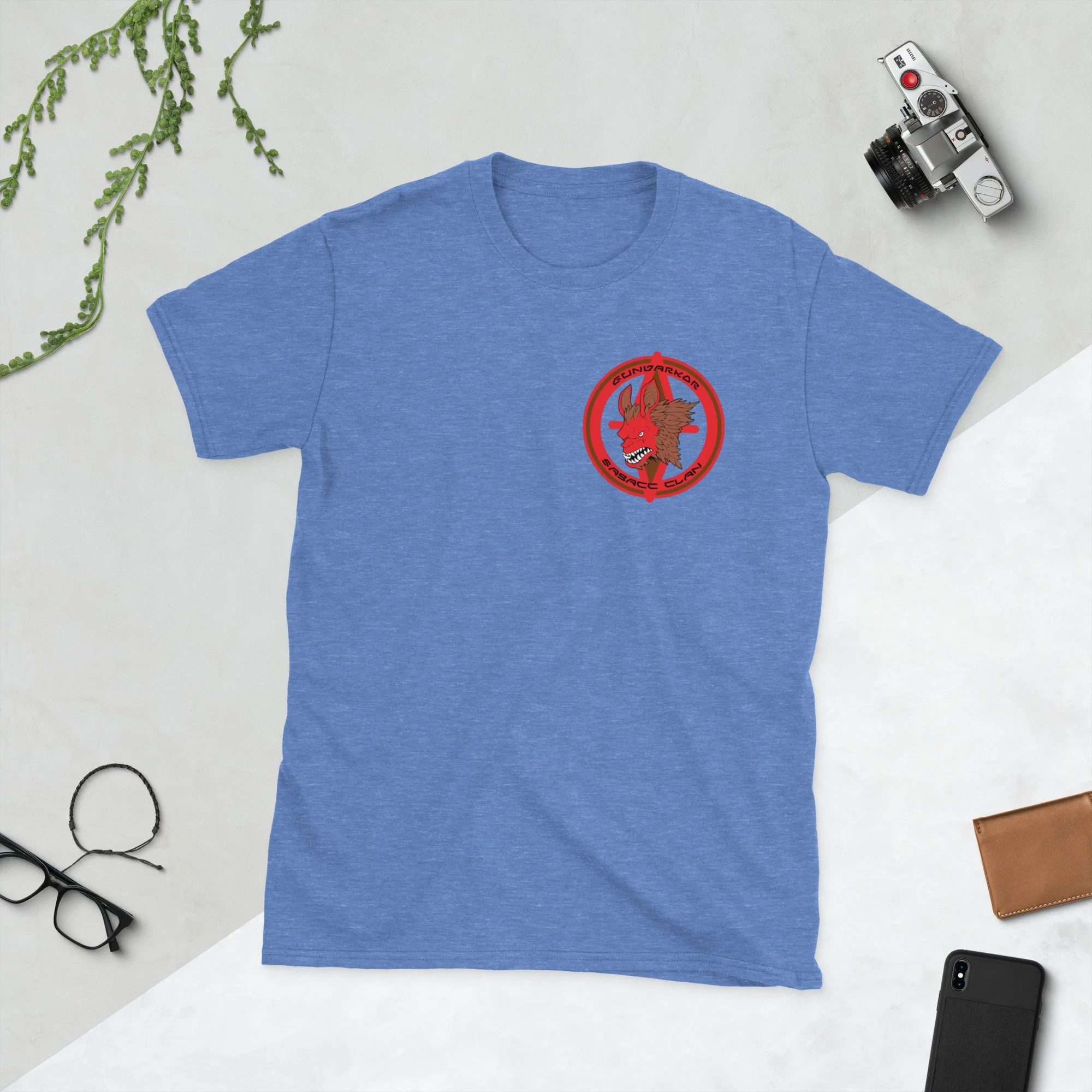 When you approach the sabacc table, you know you'll leave an impression with your bold and confident playing style! Proclaim your Sabacc Clan with pride with your new Gundarkor shirt! Made of 100% ring-spun cotton to be extra soft and comfy, you're sure to have found a new staple t-shirt for your wardrobe. The double stitching on the neckline and sleeves add more durability to what is sure to be a favorite!