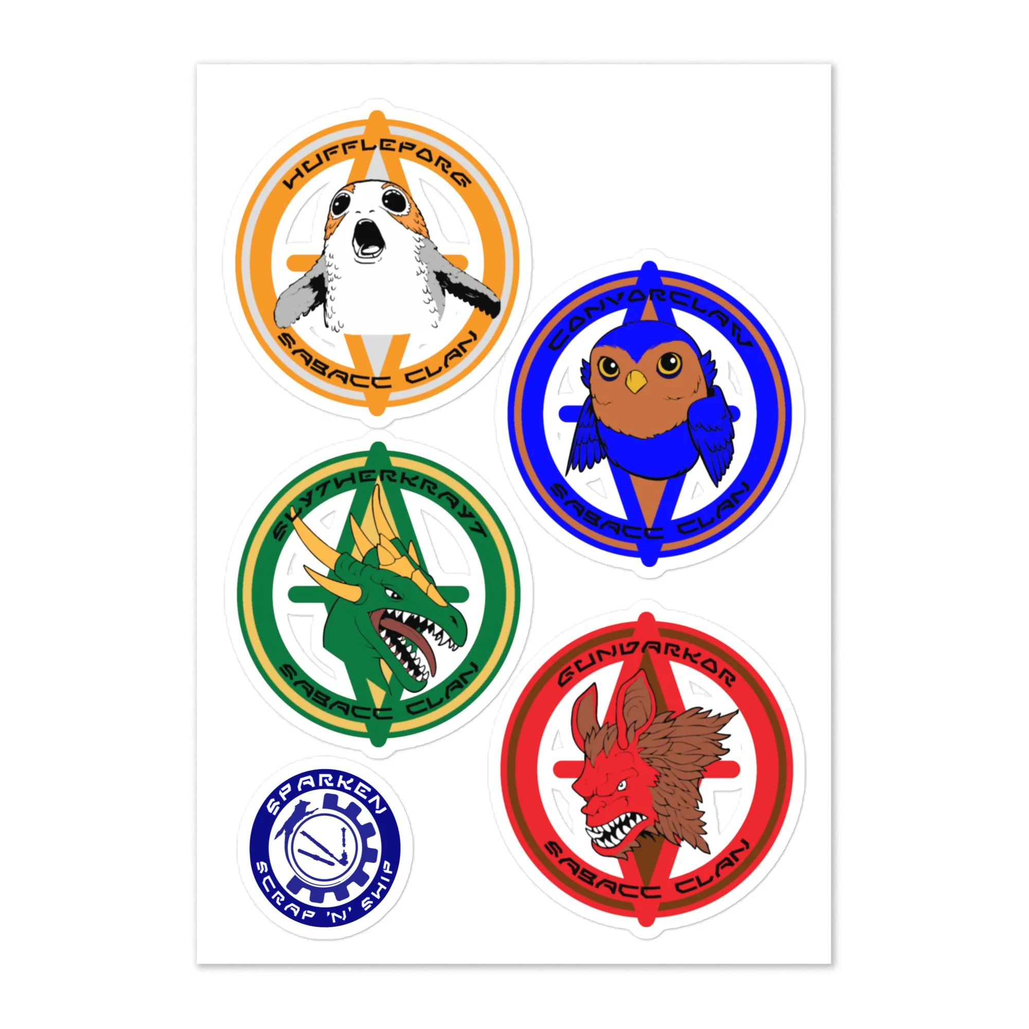 Were you a hat-stall? Don't worry! Snag all your favorites in sticker form with glossy stickers designed to showcase all the clans. Give your favorite items, like a notepad, laptop, or phone case an extra glow and personal touch.
